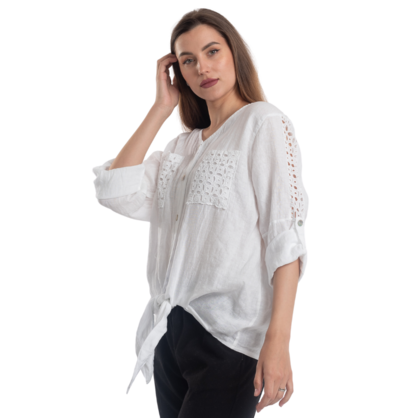 2894 WHITE ITALIAN LINEN TOP